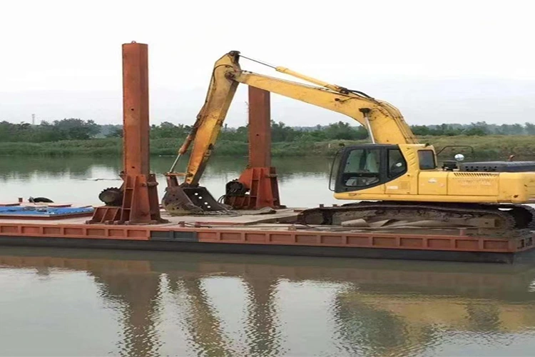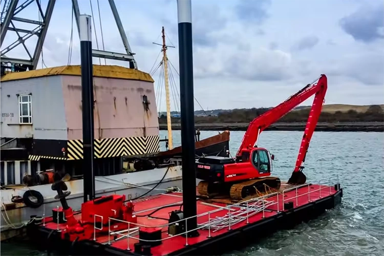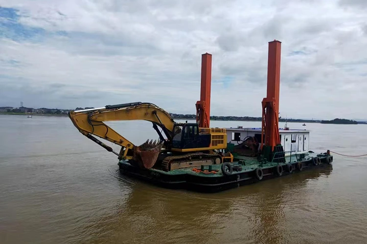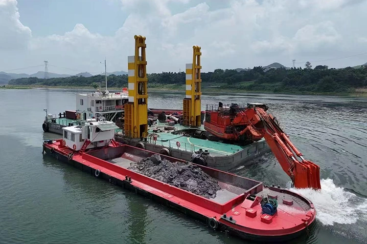 ・Adaptación de accesorios multifuncionales: La draga retroexcavadora HAIDING SHIPYARD admite el cambio rápido de accesorios como martillos hidráulicos y cucharas (conectados a través de interfaces estandarizadas, tiempo de cambio ≤2 horas). El martillo hidráulico puede romper obstáculos duros como arrecifes y bloques de concreto, y la cuchara es adecuada para limpiar escombros grandes, realizando operaciones integradas de "dragado + rotura + eliminación de obstáculos" sin equipo de soporte adicional.