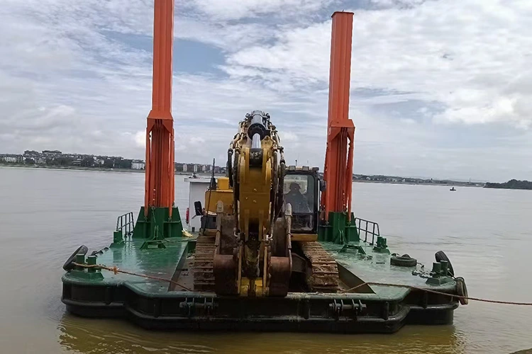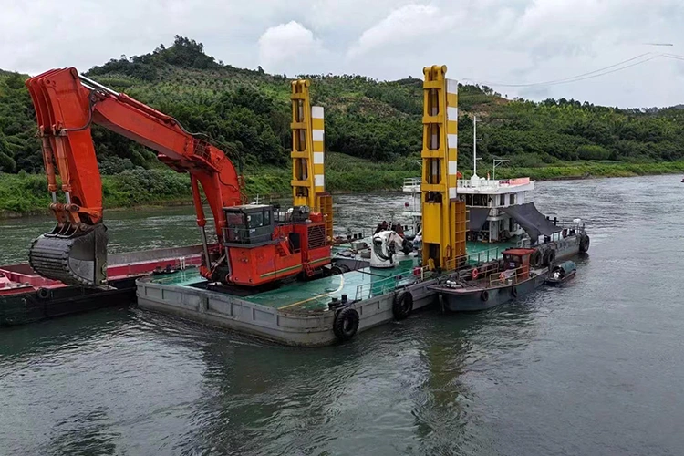 ・Bloqueo de ríos y drenaje de inundaciones: en los bloqueos de ríos interiores causados ​​por fuertes lluvias (profundidad de agua de 1 a 3 m, que contienen ramas y basura), HAIDING SHIPYARD utiliza accesorios de draga retroexcavadora para limpiar los bloqueos y bombas de lodo se utilizan para drenar el agua estancada. El volumen diario de drenaje de inundaciones alcanza los 50.000 m³, lo que restaura rápidamente la capacidad de descarga de las inundaciones del río y reduce las pérdidas por desastres causados ​​por inundaciones;